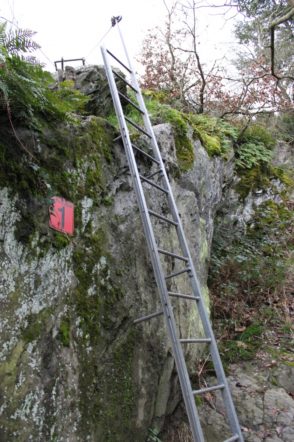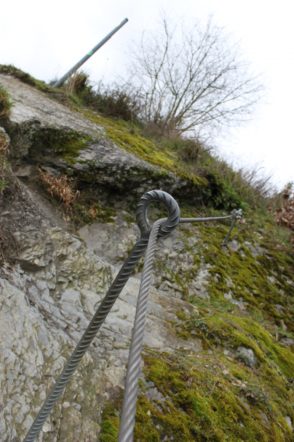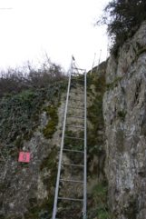 Der Rheinburgenweg bietet die Möglichkeit über den Mittelrhein-Klettersteig bei Boppard zu verlaufen. Der Klettersteig ist einer der wenigen in Deutschland außerhalb der Alpen und daher eine echte Rarität. Die Frage die mir im Kopf rumgeisterte, war ob man ihn als ungeübter Nachts ablaufen könnte, oder den harmloseren Wanderweg wählen sollte. Auf den Bildern, die im Internet rumschwirren wirkte er gut befestigt: Viele Leitern, Trittbügel und Seile zieren den Steig, so dass man ihn den Bildern zu Folge auch als Ungeübter begehen kann.