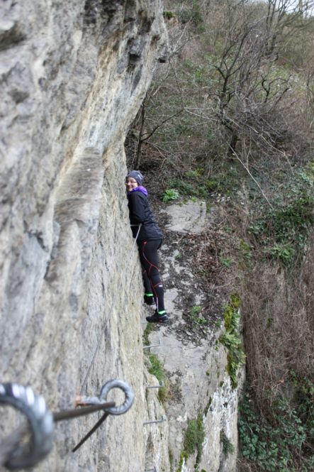Ich musste direkt an die Videos zum “Brett” bei der Zugspitze denken, die ich vor einiger Zeit gesehen habe, auch wenn unsere Trittbügel natürlich in einem viel besseren Zustand waren und es auch nicht ganz so tief hinab ging. Gedanklich nannte ich diese Stelle daher die “Latte”. Ein sehr ungewohntes Gefühl war es dennoch sich entlang der Wand zu hangeln und bisher hab ich Klettertechnisch noch nichts vergleichbares in meinem Leben gemacht.