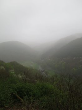 Auch wenn es aufgrund der durchweg schönen Strecke mit seinen zahlreichen Bachtälern schwer fällt von weiteren Highlights zu sprechen, so kam das Nächste mit dem Roßbacher Häubchen. Aufgrund der hohen Luftfeuchtigkeit an diesem Tag, die für nebelige Aussicht sorgte, konnten wir leider nur erahnen wie weit man von diesem Häubchen aus in die umliegenden Gebiete blicken kann.