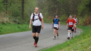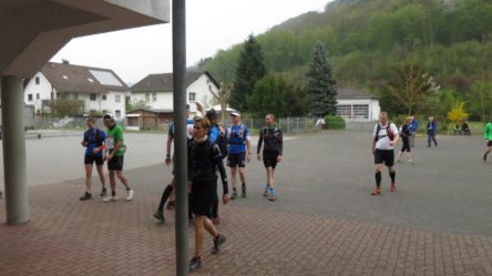 Von dort hatten wir nach meiner Laufuhr noch ca. 12 km und ganze 500 der 2100 Höhenmeter vor uns. Diese verteilen sich auf noch insgesamt zwei Anstiege. Der erste folgt unmittelbar nach Arnsau, der zweite endet auf dem Westerwaldsteig ca. 4 km vor dem Ziel. Der letzte Abstieg hingegen trägt einen durch Serpentinen wieder in Richtung Waldbreitbach hinunter. Von dort liefen wir dann gemeinsam zum Endpunkt an den Sportanlagen, den wir nach ungefähr 10 Stunden auch erreichten.