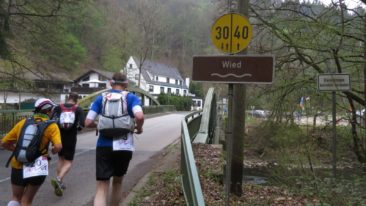 Wenig später nach unserem zweiten Verpflegungszelt bewiesen wir aufgrund einer Baustelle am Rande von Waldbreitbach unsere Kletterkünste. Weiter ging es dann in Richtung Verscheid entlang des Hochscheider Baches, ehe wir wieder in Richtung des Fockenbachs und vorbei an der Fockenbachmühle die nördliche Spitze von Hochscheid tangierten. Von dort war es nicht mehr lang ehe wir zum dritten Verpflegungspunkt am Sportplatz in Nassen ankamen.