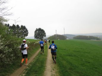 Auch wenn sich ein äußerst geringer Asphaltanteil nicht vermeiden lässt, so ist die gelaufene Strecke überaus schön und abwechslungsreich. Oft läuft man auf schmalen Pfaden, dann wechseln sich wieder breitere Wege mit Wegen über offenen Feldern ab. Fast überall scheint dabei die hügelige Landschaft neben einem jedoch schluchtenmässig ins Tal abzufallen. Kurzum: trotz des gießigen Ausblicks an diesem Tag, war der Lauf ein schöner Rundlauf um und durch das Wiedtal.