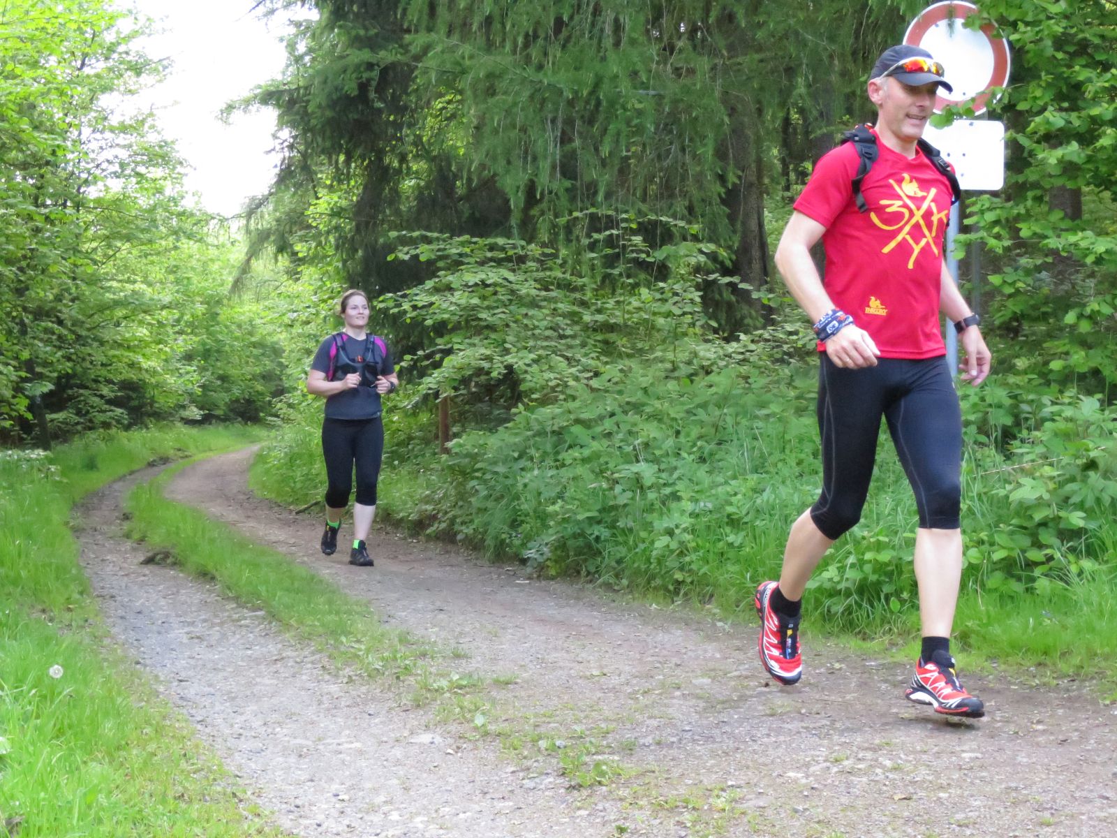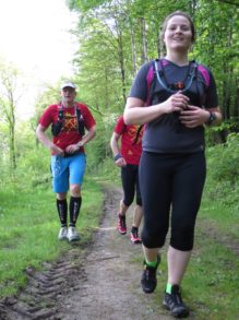 Meine Freundin und ich folgten kurzfristig den Aufruf von Frank Haubrich auf Facebook zu einem hübschen ca. 25 km langen Gruppenlauf von Kirchen nach Daaden. Für uns beide war die Laufveranstaltung totales Neuland: Für meine Freundin war es der erste Gruppenlauf überhaupt und aufgrund unserer Orts- und Personenunkenntnis konnten wir zudem weder das Tempo noch die zu erwartende Anstrengung des Laufes einschätzen. Das Bild des Druidensteiges wirkte auf uns aber so interessant, dass wir unbedingt mitlaufen wollten. Somit fuhren wir erstmal mit gemischten Gefühlte los. Da wir von Bonn mit dem Auto anreisten, war das ganze für uns eher ein Car-to-Trail. Statt in Daaden mit der Bahn loszufahren fuhren wir direkt zum Start nach Kirchen und konnten somit zumindest ein wenig länger ausschlafen, was für mich ein wenig mehr Erholungszeit vom gestrigen Sieben auf einen Streich bedeutete.