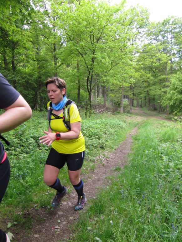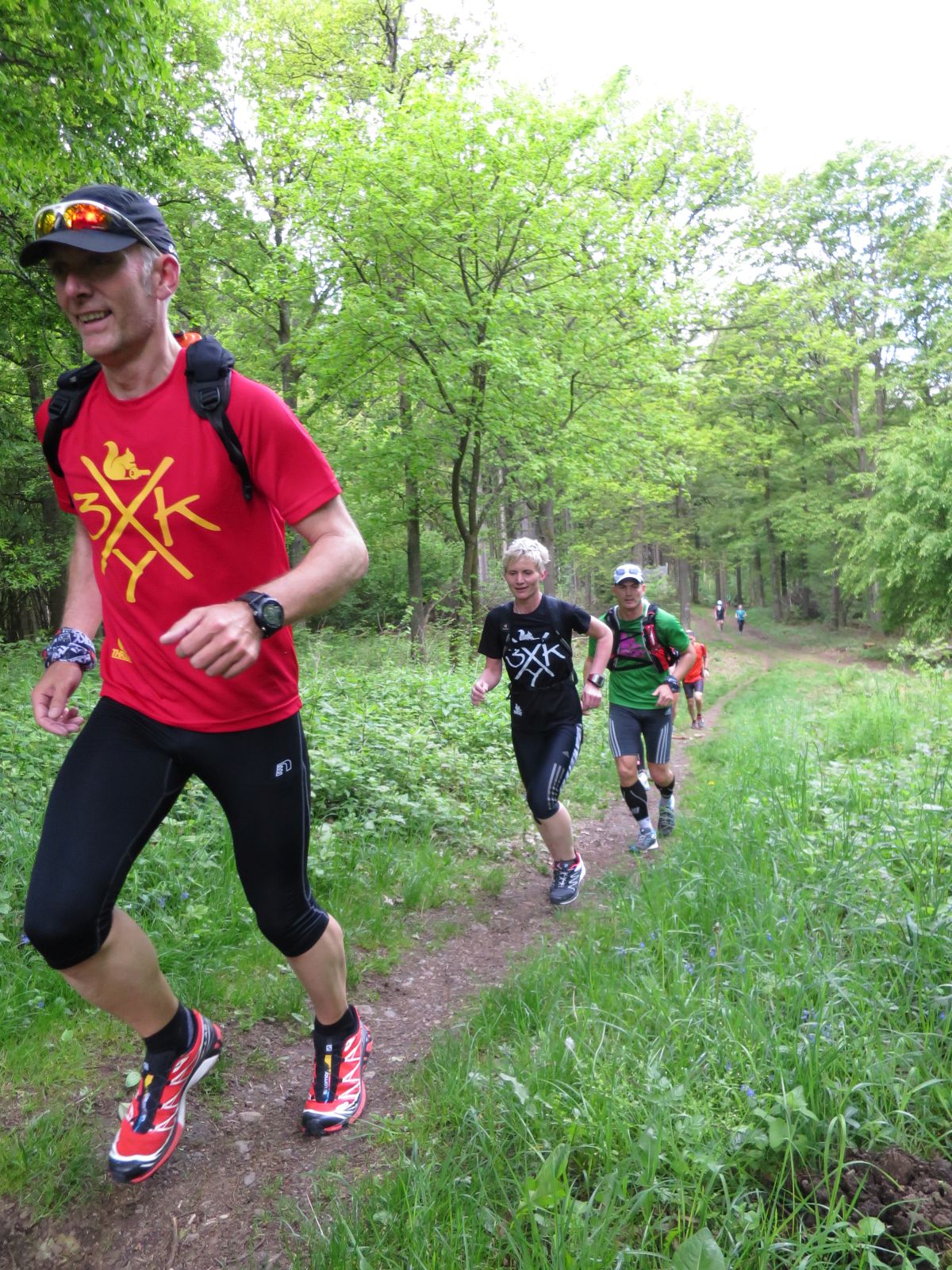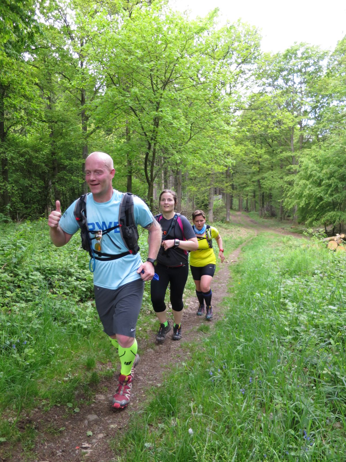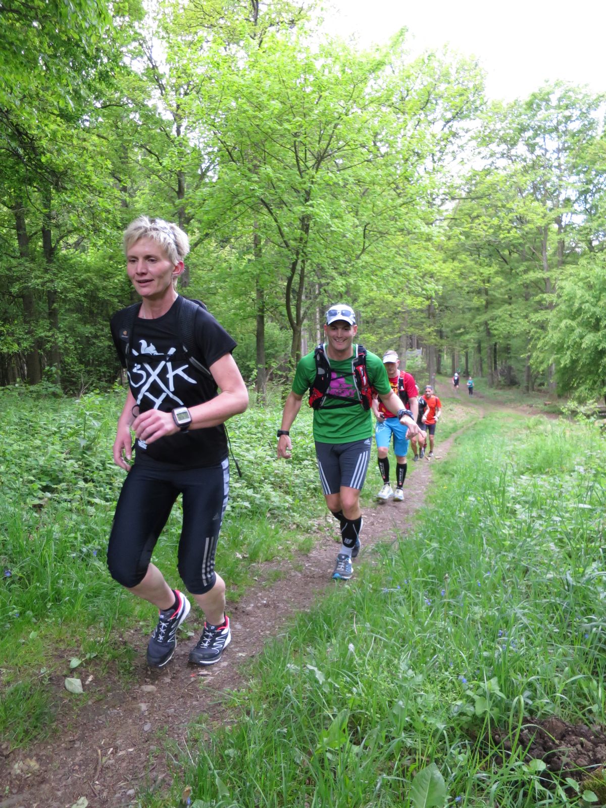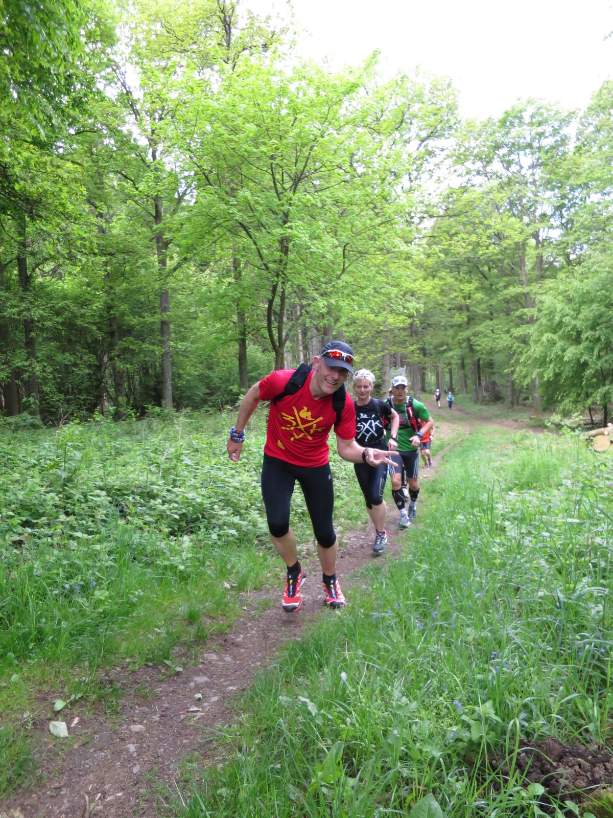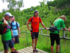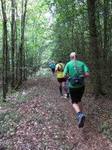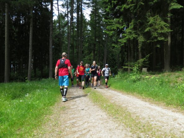 Nach einem erneuten Gruppenbild ging es dann langsam wieder in Richtung Daaden, nicht ohne jedoch vorher noch ein Brennnesselfeld zu durchqueren. Auffälig war, dass an trailigeren bergab Passagen immer Carsten vorgeschickt wurde und dieser nach dem Lauf dann wohl der einzige war, der auf Facebook eine Zeckenwarnung aussprechen musste, von der jedoch niemand anderes betroffen gewesen zu sein schien 🙂