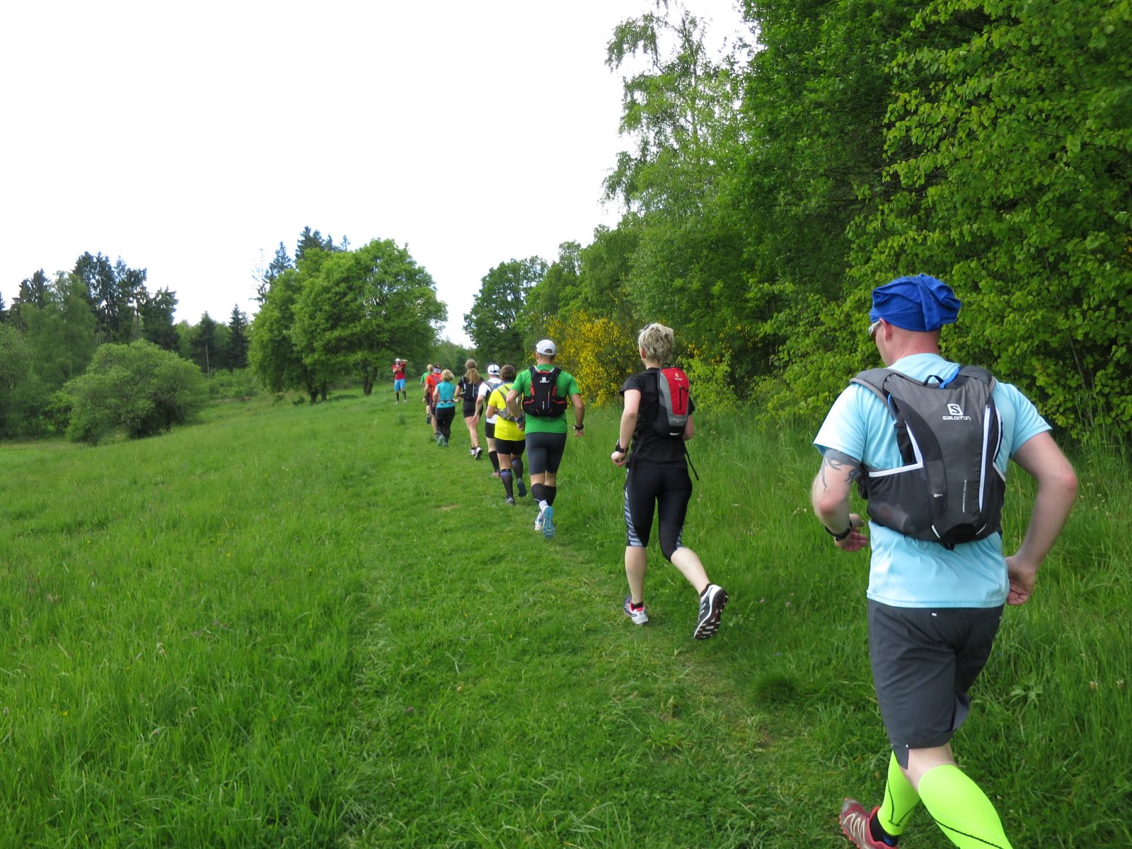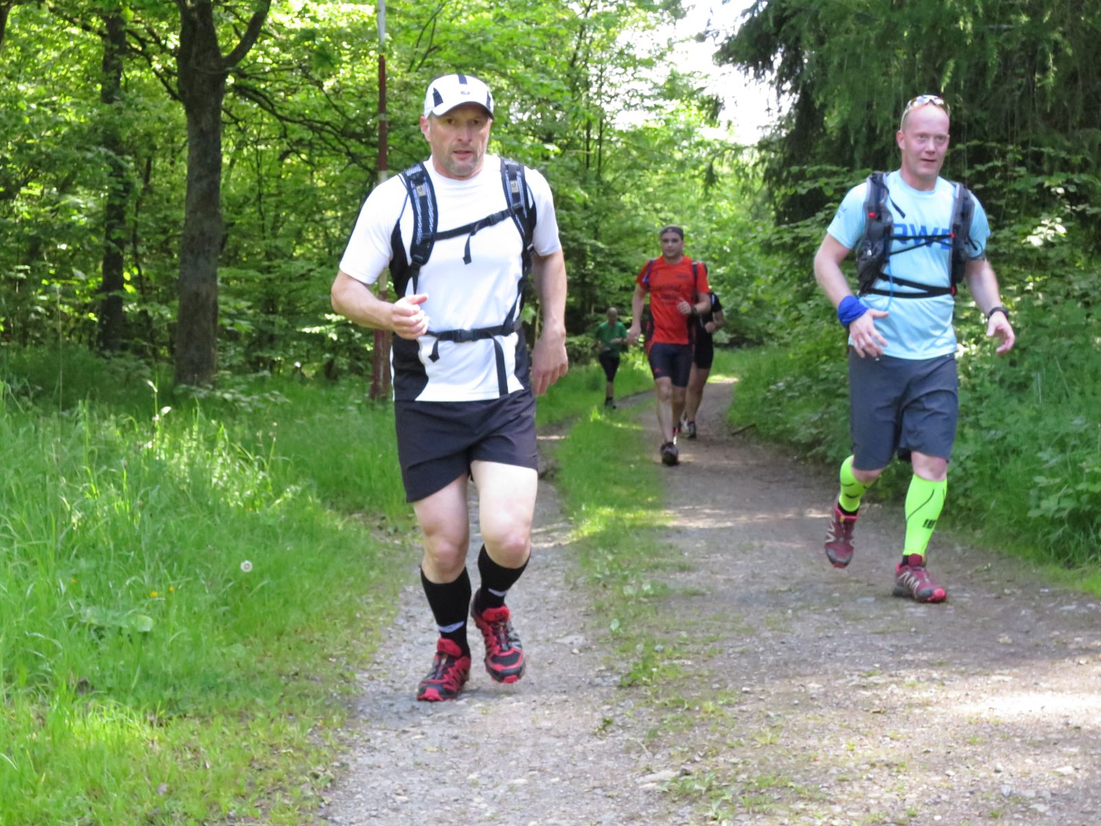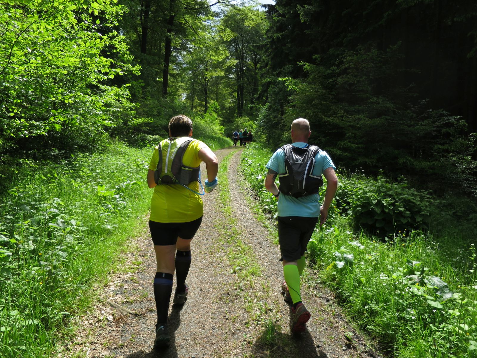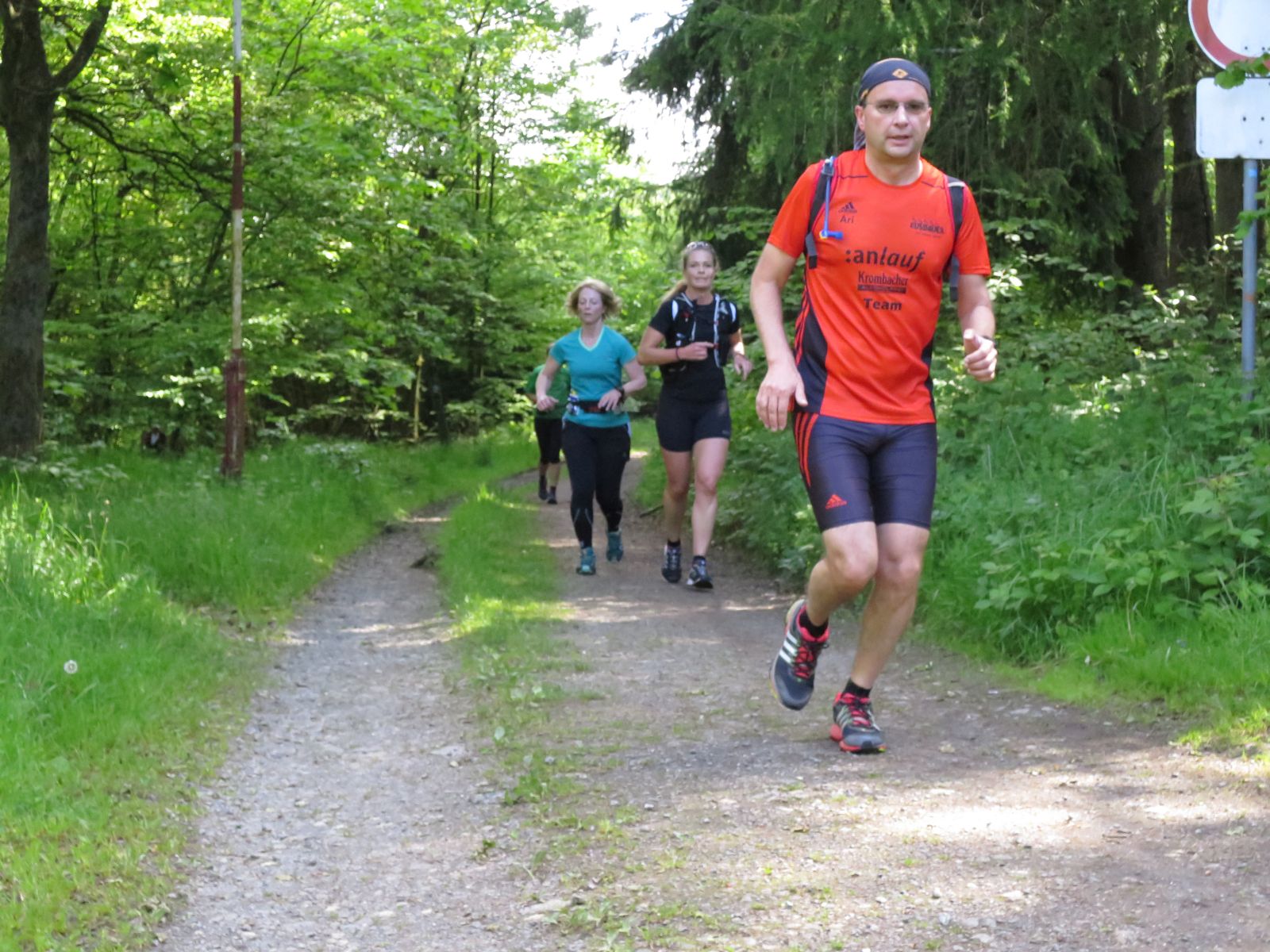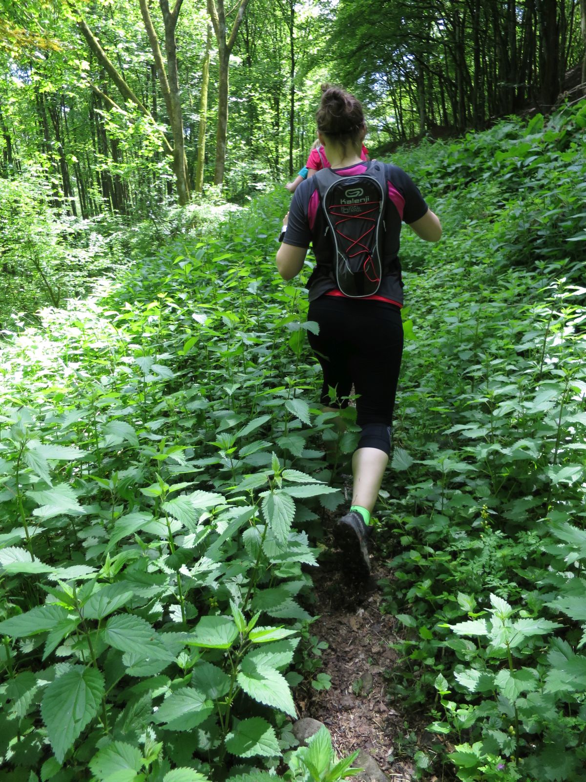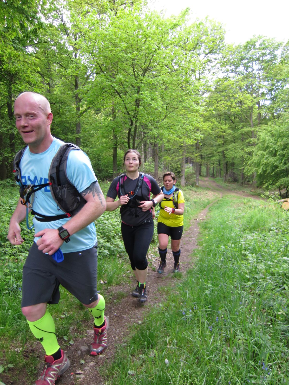 Nach einem erneuten Gruppenbild ging es dann langsam wieder in Richtung Daaden, nicht ohne jedoch vorher noch ein Brennnesselfeld zu durchqueren. Auffälig war, dass an trailigeren bergab Passagen immer Carsten vorgeschickt wurde und dieser nach dem Lauf dann wohl der einzige war, der auf Facebook eine Zeckenwarnung aussprechen musste, von der jedoch niemand anderes betroffen gewesen zu sein schien 🙂