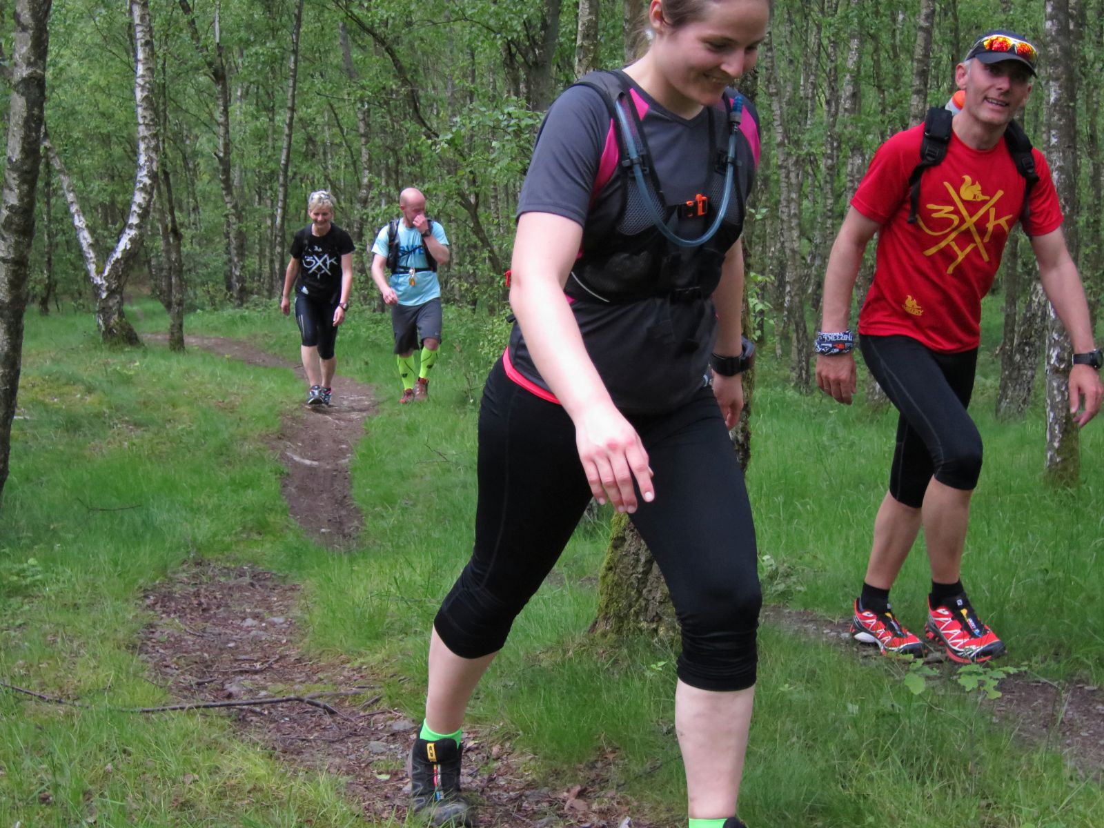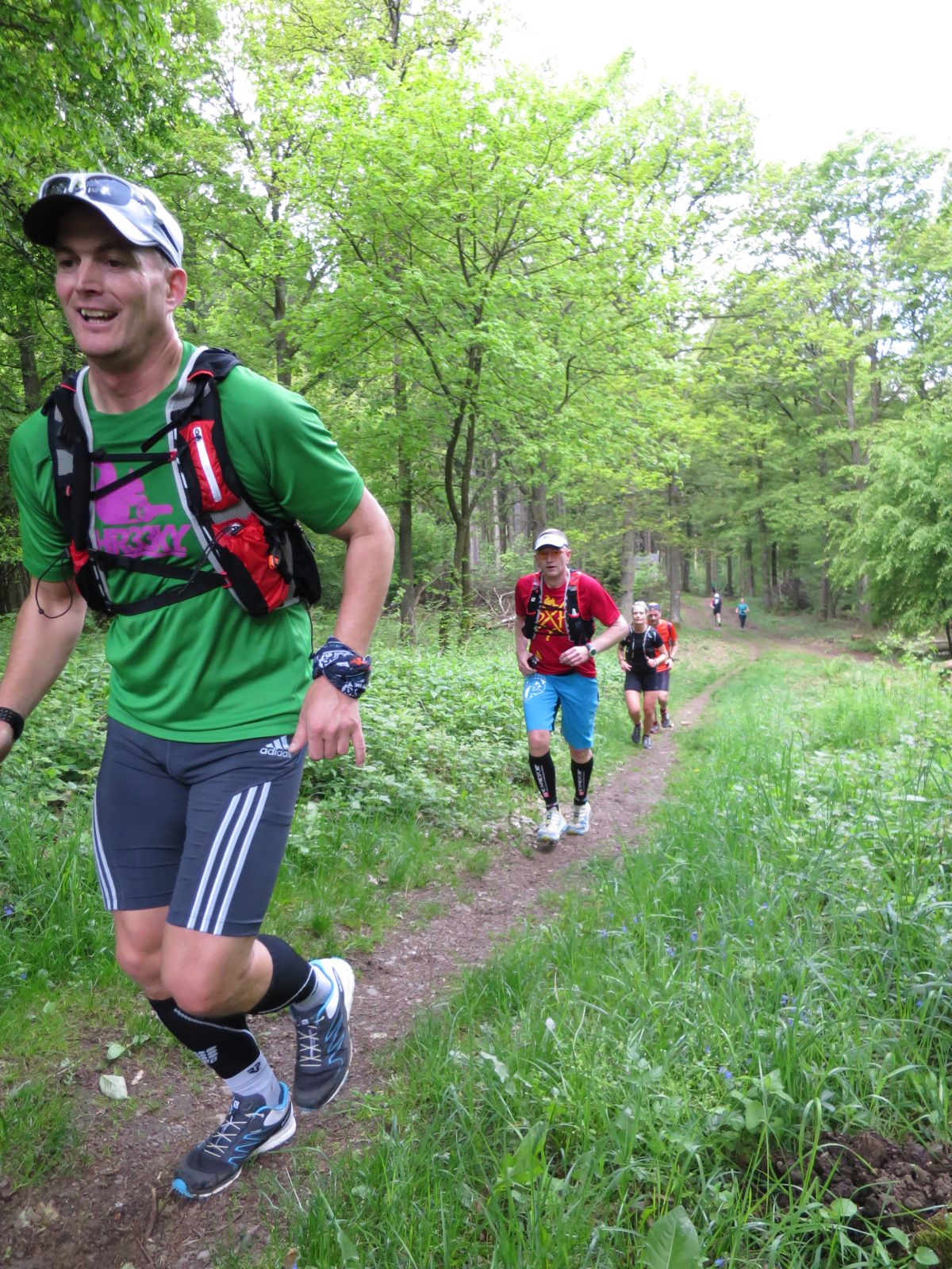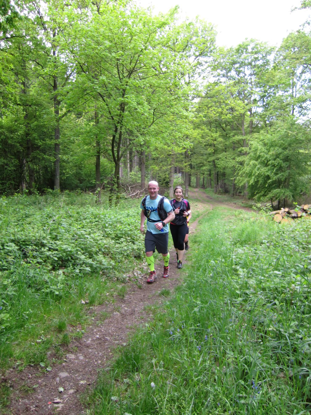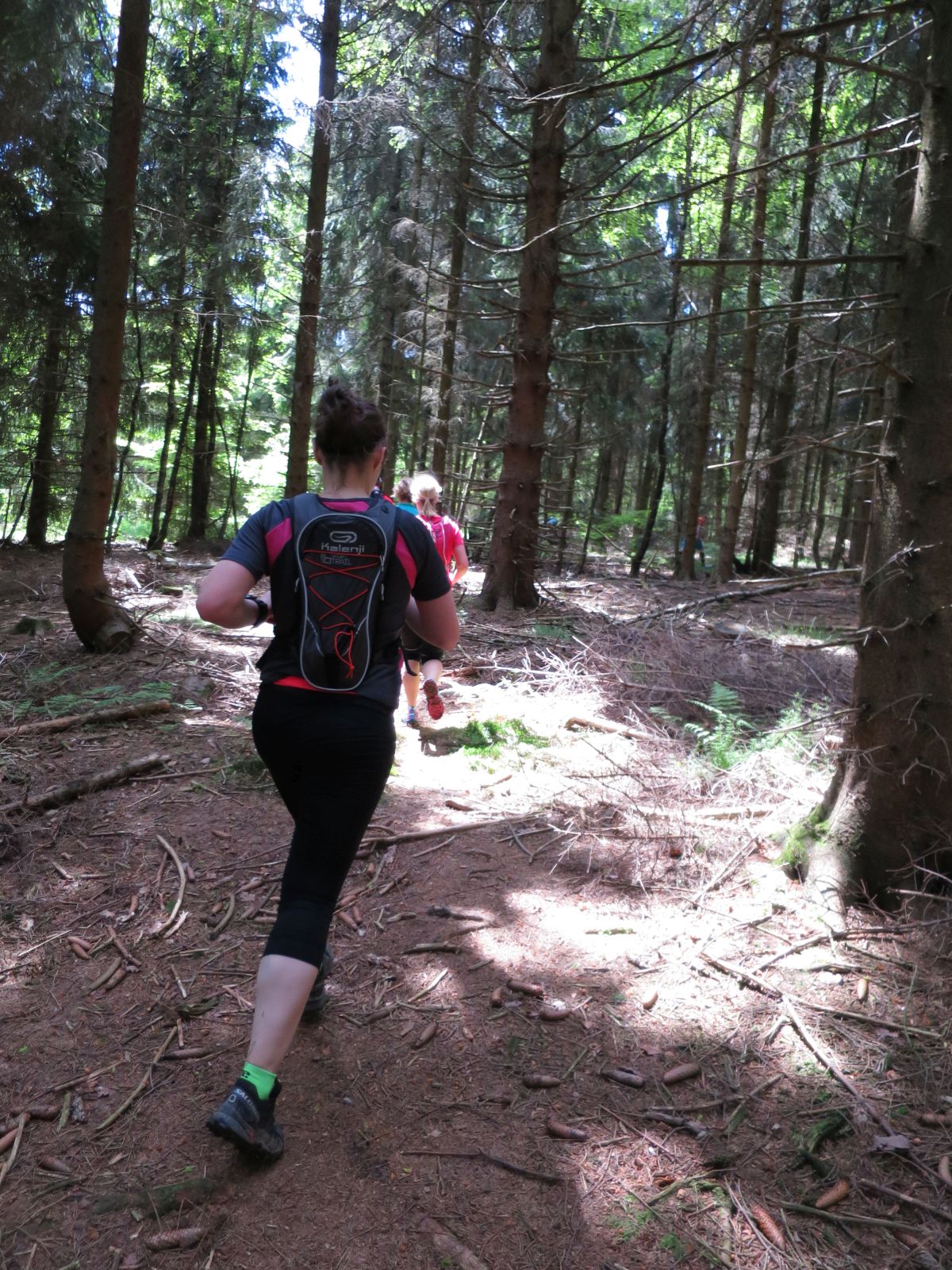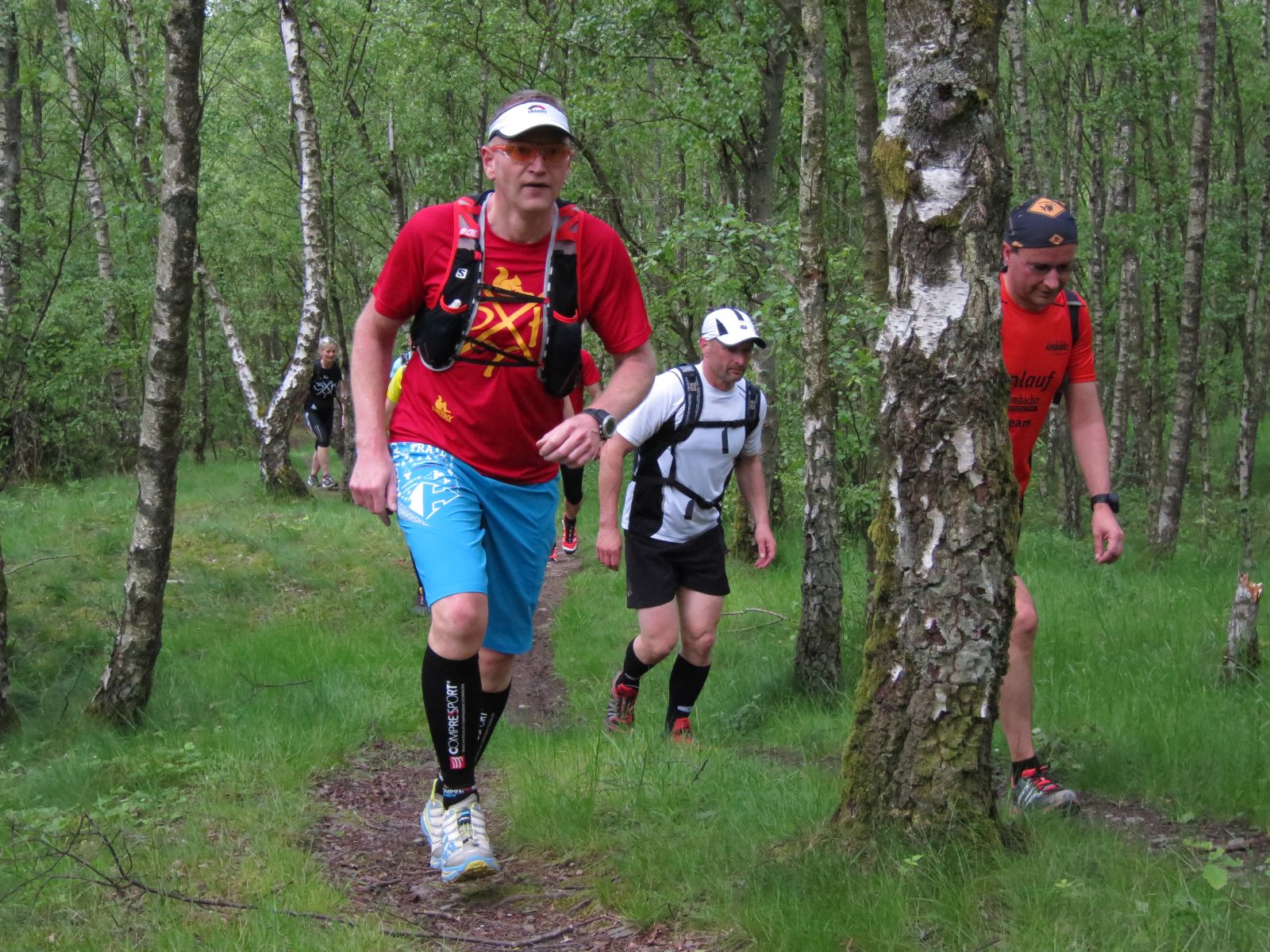 Nach einem erneuten Gruppenbild ging es dann langsam wieder in Richtung Daaden, nicht ohne jedoch vorher noch ein Brennnesselfeld zu durchqueren. Auffälig war, dass an trailigeren bergab Passagen immer Carsten vorgeschickt wurde und dieser nach dem Lauf dann wohl der einzige war, der auf Facebook eine Zeckenwarnung aussprechen musste, von der jedoch niemand anderes betroffen gewesen zu sein schien 🙂