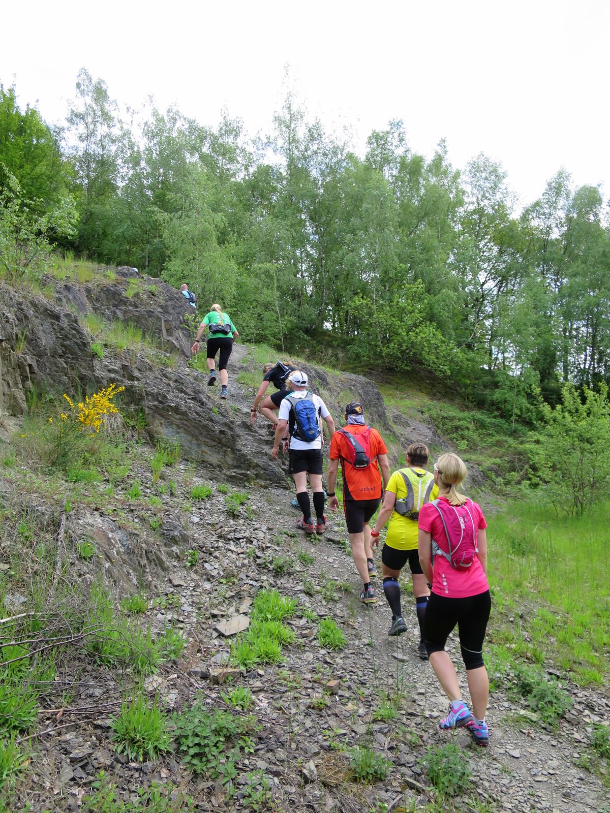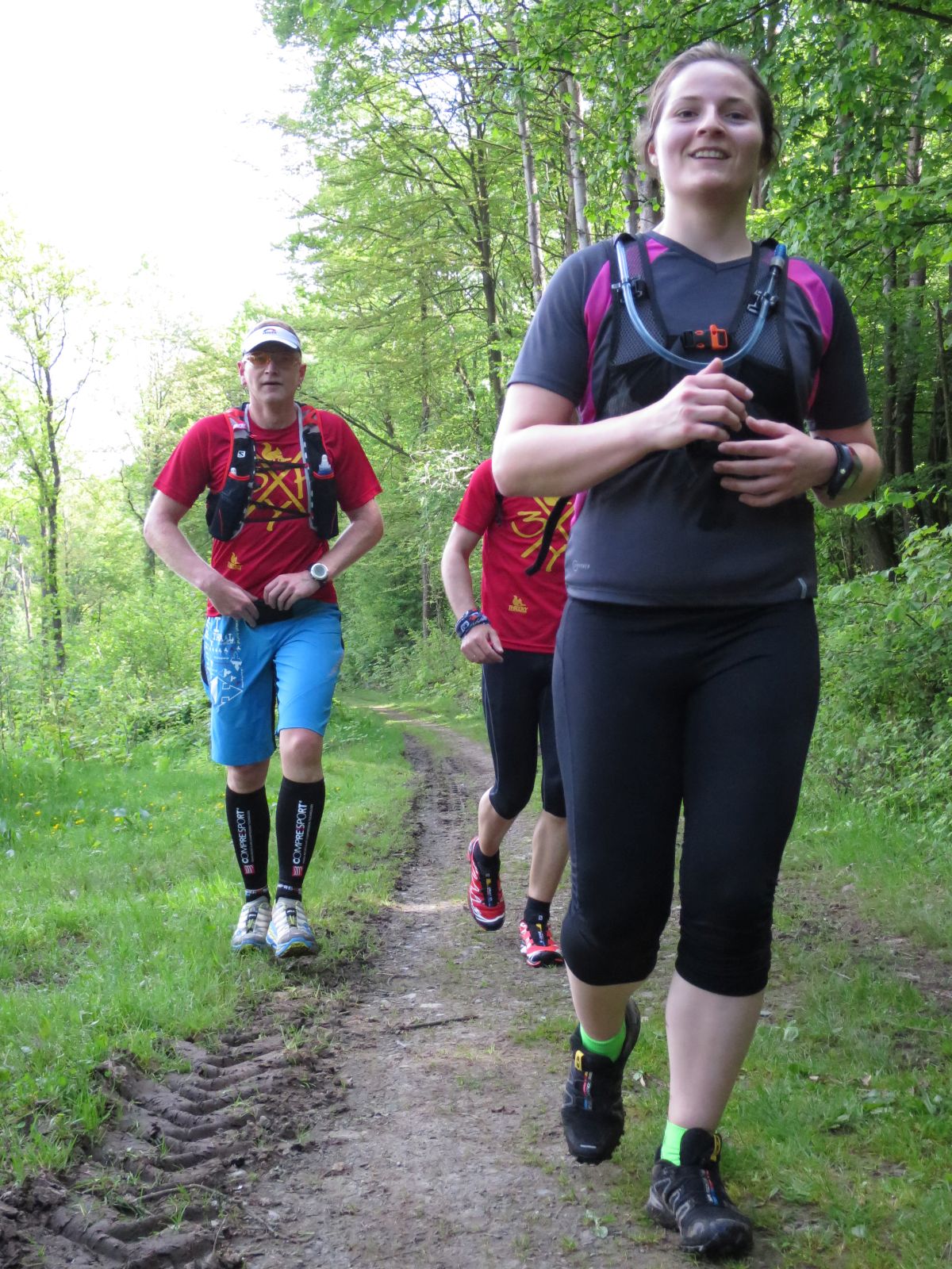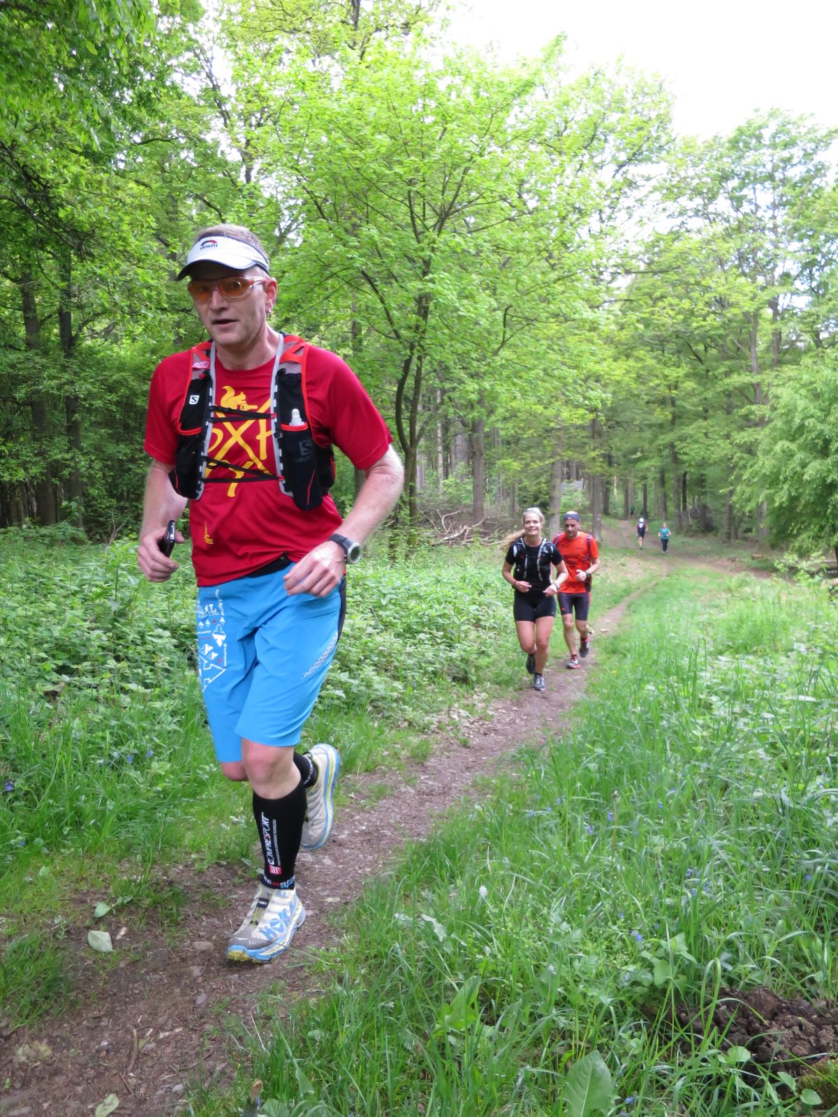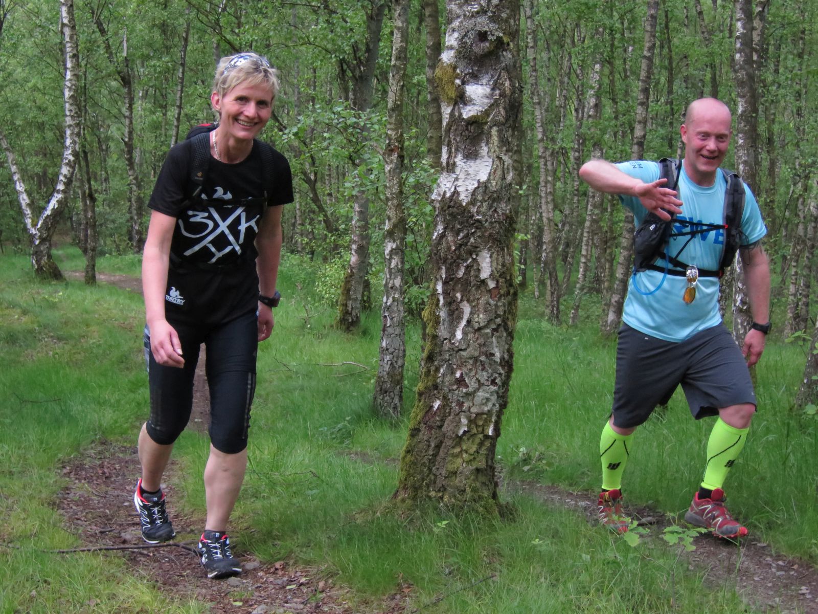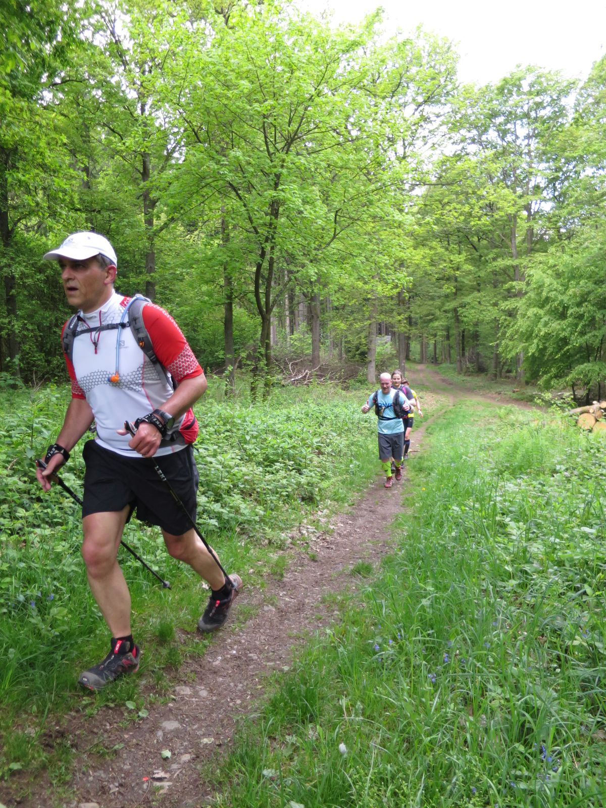 Nach einem erneuten Gruppenbild ging es dann langsam wieder in Richtung Daaden, nicht ohne jedoch vorher noch ein Brennnesselfeld zu durchqueren. Auffälig war, dass an trailigeren bergab Passagen immer Carsten vorgeschickt wurde und dieser nach dem Lauf dann wohl der einzige war, der auf Facebook eine Zeckenwarnung aussprechen musste, von der jedoch niemand anderes betroffen gewesen zu sein schien 🙂