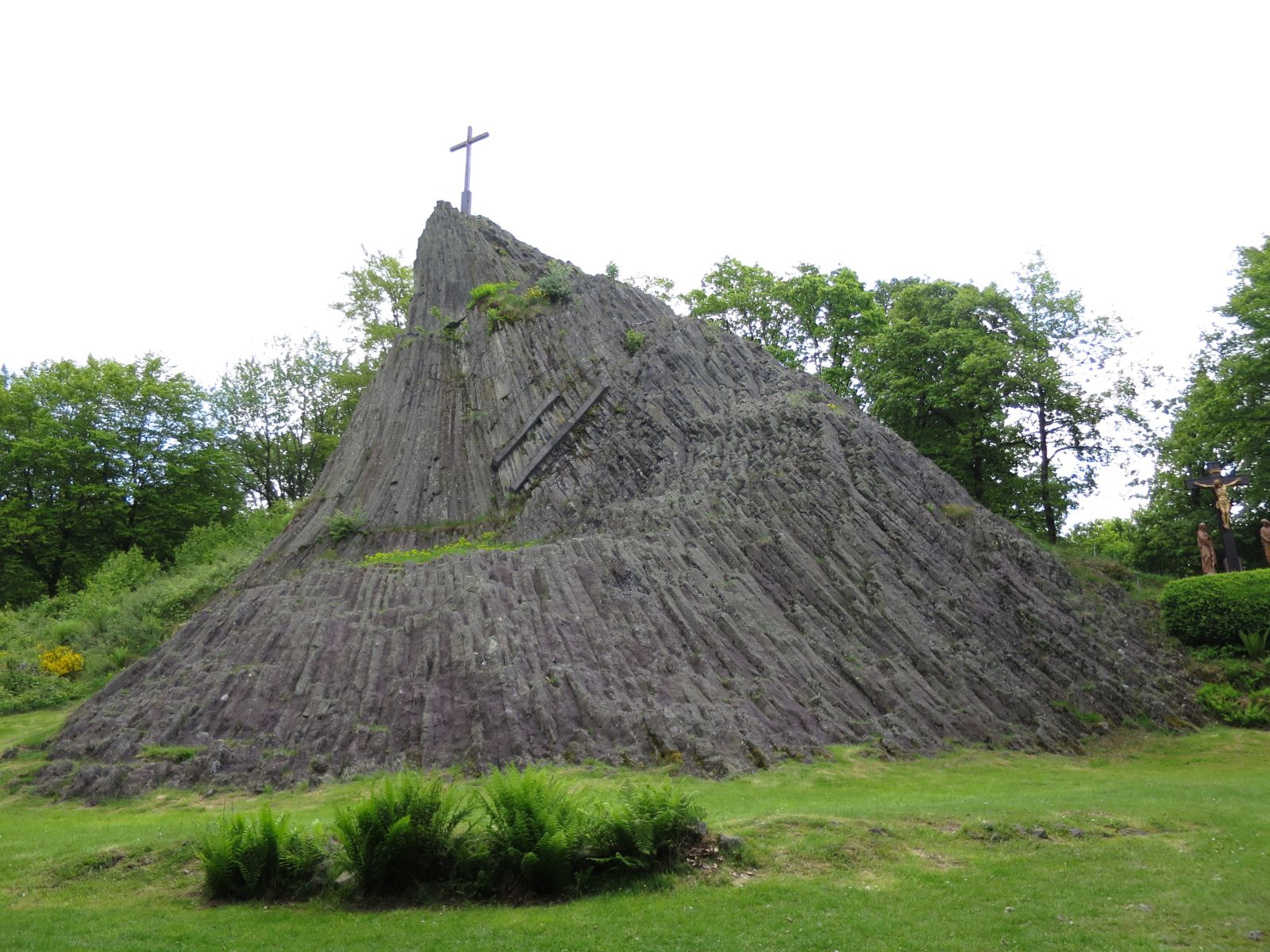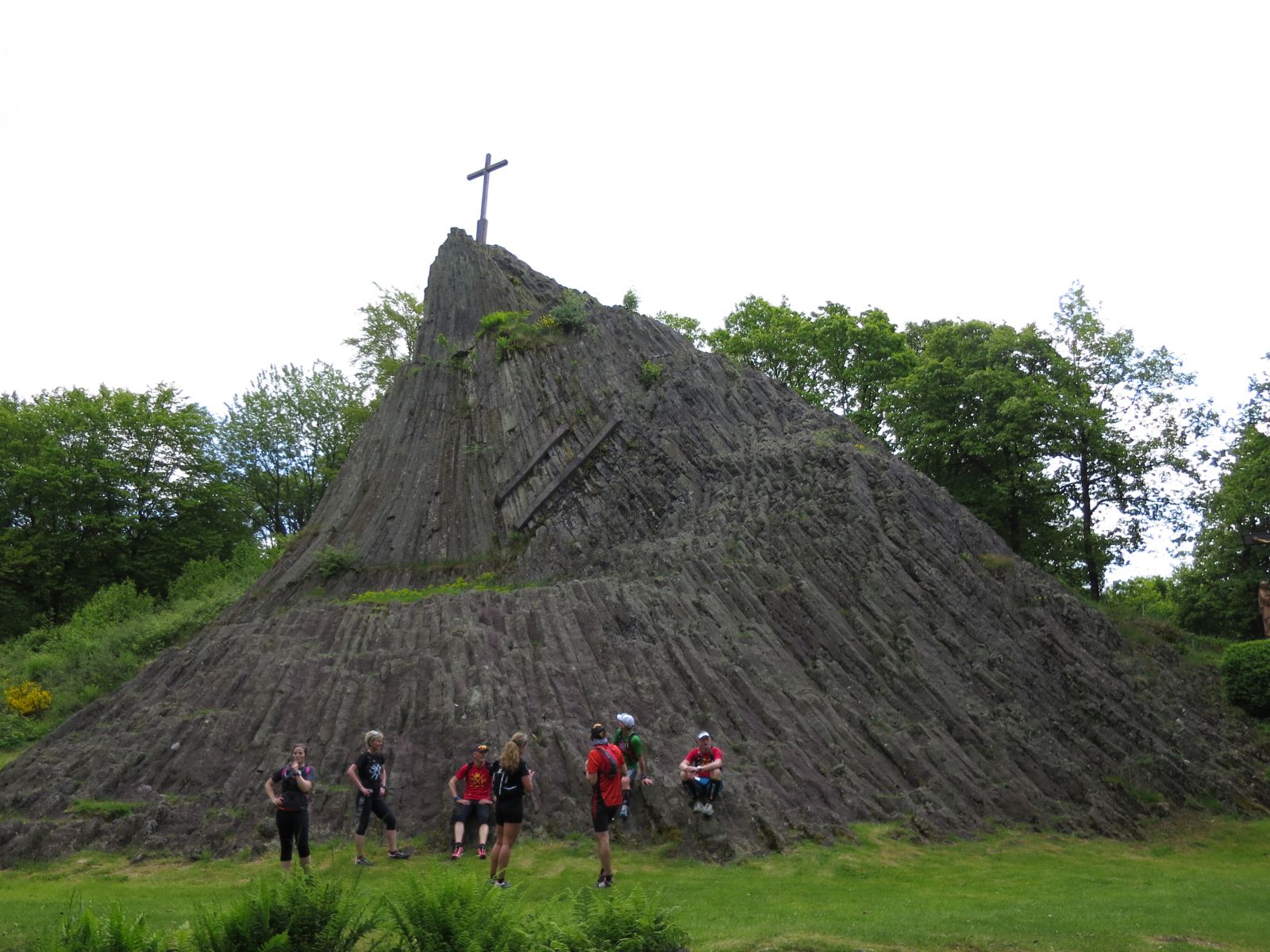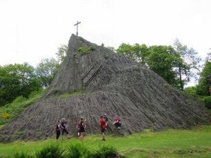 Vom Otto-Turm ging es dann weiter zum Druidenstein. Es wurde der Aufstieg über den Kreuzweg zu diesem markanten kegelförmige Basaltfels gewählt. Es ist ein imposantes Bild, wenn er am Ende des Kreuzweges am Horizont auftaucht und man ist schier sprach- und atemlos (auch weil ein Kreuzweg nunmal steil ist), wenn man dann vor ihm steht. Ein Besuch lohnt auf jeden Fall. Dort machten wir dann auch ein abermaliges Gruppenfoto (inkl. Druiiiiiiiiideeeeeee-Smile).
