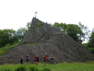 Sowohl die Teilnehmerzahl als auch sich selbst gut gestärkt ging es dann vom Verpflegungspunkt auf zum zweiten Teil des Laufes. Das nächste Highlight, dass angelaufen wurde war das Kreuz auf der Ley kurz vor Herdorf.