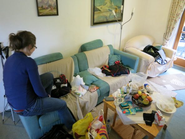 Zu Hause musste ich mich dann erstmal noch entscheiden ob ich in Kurz, lang oder dreiviertel Laufen würde, entschied mich letztendlich jedoch als Kompromiss für Dreiviertel…Gott Sei dank hatten wir in der Mittagszeit schon unsere Laufrucksäcke gepackt.