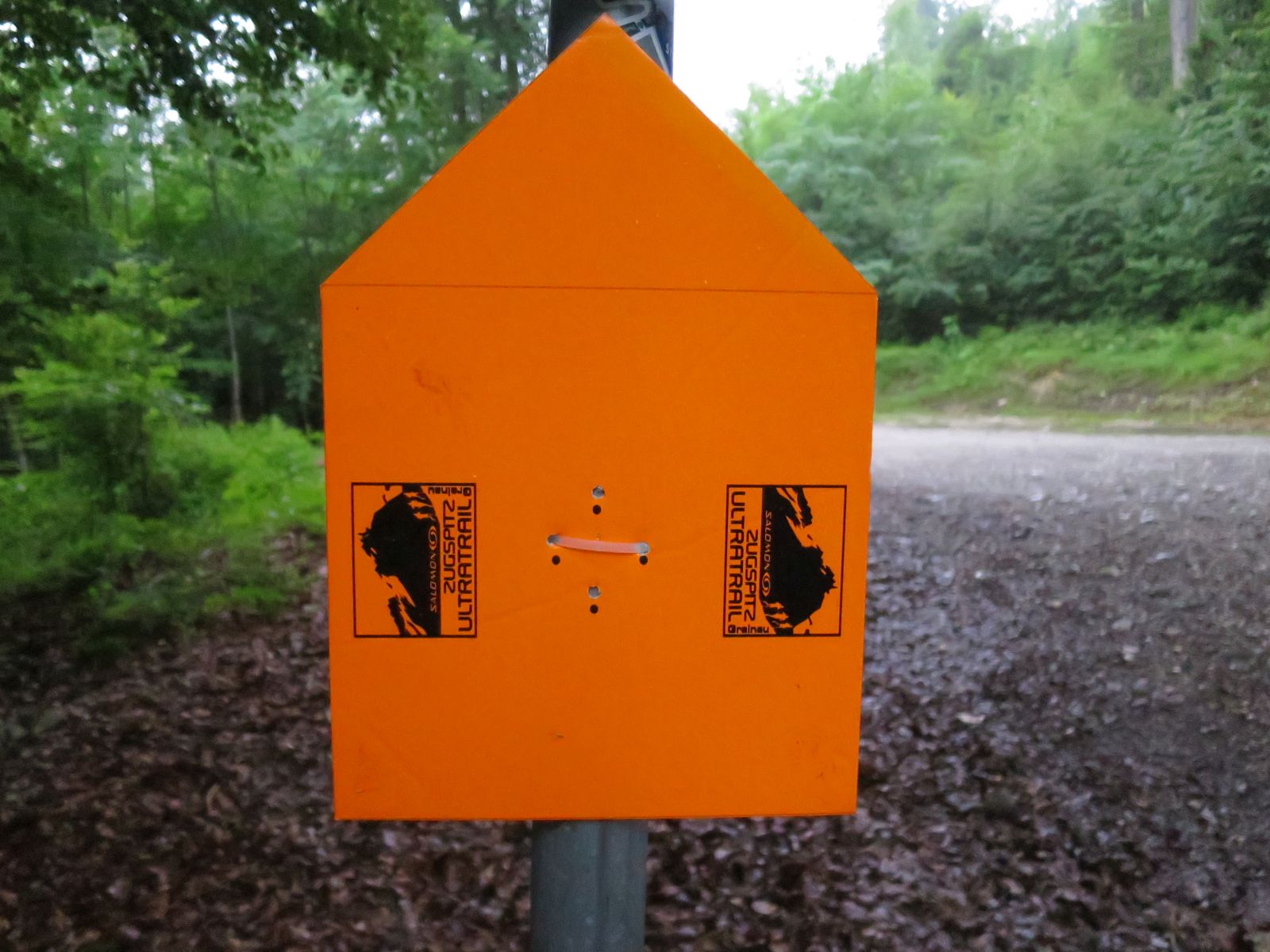 Daheim in der Wohnung wurden dann mit großen Augen die einzelnen Elemente des Startpaketes inspiziert unter dessen sich auch das kleine obligatorische Trailbuch befand, was man mitnehmen musste. Nun hieß es also Sachen packen. Wenn man einen großen Seesack voller Laufklamotten dabei hat, fällt die Entscheidung was anzuziehen recht schwer. Dennoch gelang es mir nach einiger Zeit den Dropbag mit Kinderschokolade, Ersatzlampe, Schuhe, Socken und Blasenpflaster zu packen, den wir dann in der Nähe der Registrierung wiederabgaben. Mittlerweile war der Tag schon weit fortgeschritten, dennoch machten wir uns nach Hammersbach auf um die ersten Kilometer des Ultratrails noch einmal in Richtung der Höllentalklamm abzugehen. Nass und rutschig war die kleine Wanderung und ein wenig Schade, dass die Zeit nicht mehr gereicht hat um noch einmal einen Abstecher durch die Höllentalklamm zu machen. So kamen wir nach dem Abstieg durch den Märchenwald jedoch pünktlich zur Pasta Party im Musikpavillon an.