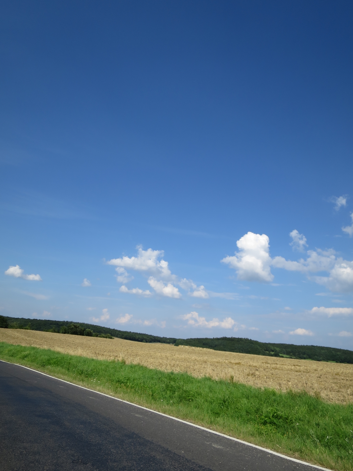 Meine Freundin und ich haben Zuwachs bekommen: ein schneidiges, helles, freundliches, leichtes und sympathisches Rennrad gesellt sich seit ein paar Tagen zu unserer Sportausrüstung. Das Rädchen musste natürlich gleich eingeweiht werden. Nach einer äußerst kurzen Eingewöhnungstour für die Klickpedalen ging es auf der ersten richtigen Ausfahrt auch direkt mal auf eine konditionsmässig schon anstrengendere Strecke. Tapfer hat meine Freundin in die Heldenkurbel getreten und die ersten 900 Hm mit der Neuen absolviert. Bei unserem Start in Bad Godesberg ging es die Pecher Landstraße über Pech, Villip, Arzdorf, Fritzdorf auf die Abfahrt durch Nierendorf in Richtung Bad Neuenahr. Dort genoßen wir in der Fußgängerzone ein Minieis ehe es am Waldkrankenhaus entlang die lange Steigung in Richtung Königsfeld ging. Ich liebe die Fahrt ins wunderschöne Ahrtal mit dem Rennrad und noch mehr liebe ich die anschließende Steigung nach Königsfeld. Wenn man oben ankommt, öffnet sich der Wald und offenbart den Blick über die weiten Felder der Eifel. Ab da erhalte ich immer ein mildes Gefühl von Freiheit auf den Rad. So sehr ich das Laufen durch Wald, Schlucht und Berg mag, so sehr mag ich auch das Rennradfahren über offene Felder über verlassene Landstraßen.
