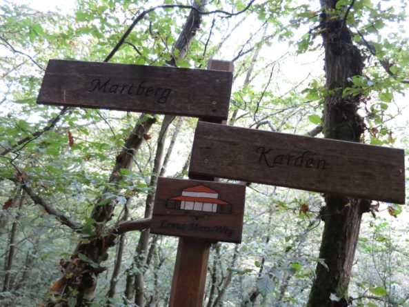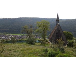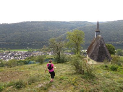Der Weg führte uns auf einem Kreuzweg raus aus Treis-Karden zu unserer ersten Steigung in Richtung “Martberg”. Nach den ersten paar Höhenmeter hat man die Gelegenheit den offiziellen Weg zu verlassen um eine in der Nähe befindliche Kapelle zu besichtigen, von der man trotz der geringen Höhe bereits einen recht hübschen Überblick auf Treis-Karden und die Mosel erhält. Schon bald zog es uns jedoch wieder auf den Weg und weiter hinauf in Richtung des Martbergs.