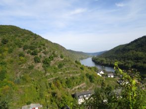Klotten selbst wird nur gestreift und als Einstieg für den Aufstieg in die Weinberge genutzt. Der Moselsteig führt hier inmitten durch die Häuser durch und man muss ein wenig aufpassen, sonst verpasst man die Abzweigung zwischen den Häusern. Das nächste große Zwischenziel der Etappe ist der Wild- und Freizeitpark Klotten an welchem der Steig vorbeizieht. Unterwegs dorthin durchläuft man Wald und hat immer mal wieder die Chance an verschiedenen Aussichtspunkten den Blick auf die Moselgegend zu werfen. Am Freizeitpark gibt es die Gelegenheit mit einer Gondel zurück nach Cochem zu fahren, aber wer es bis hierhin geschafft hat, der schafft den Rest der Strecke auch noch 🙂