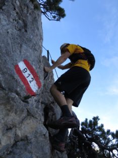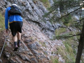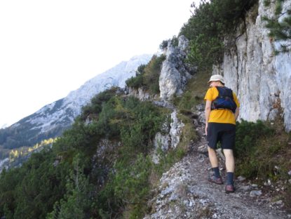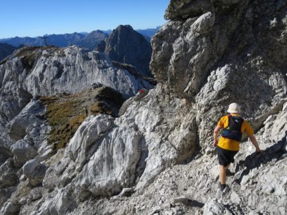 Ab dort wandelt man auch auf dem Hohen Gang. Der Hohen Gang ist ein im Aufstieg relativ einfacher Klettersteig, der sich serpentinenartig und über große Teile stahlseilversichert zum Seebensee