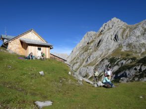 Für uns ging es nach staunenenden Blicken noch einige Höhenmeter weiter zur Coburger Hütte. Die Hütte hatte jedoch eine Woche vorher leider schon ihre Türen für den Gastbetrieb verschlossen. Wir pausierten in der naheliegenden Umgebung dennoch eine kurze Zeit, genoßen die absolute Ruhe am Drachensee und den Blick auf den mittlerweile in greifnähe vorgerrückten Hinteren Tarjakopf.