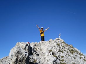 Kurz vor erreichen des Tajatörls verlässt man den Weg nach links zum Aufstieg des hinteren Tarjakopfes. Über einen schotterige Spur läuft man hin zu einem Grad, an dem der für uns unerwartet felsige Aufstieg bis zu einem kleinen Gipfelkreuz führt. Das imposantere Kreuz am tieferliegendem Westgipfel ist von dort aus über eine Scharte und einer mit Eisenklammern versicherten Wand erreichbar.