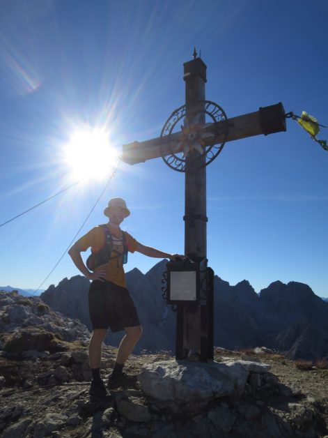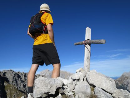 Am Gipfelkreuz machten wir ein wenig Pause, bestaunten die Schatten, die nun kurz vor 16:00 Uhr immer länger wurden, verewigten uns im Gipfelbuch und genoßen einige Minuten lang das Panorama während wir einen leckeren selbstgebackenen Cookie zu uns nahmen.