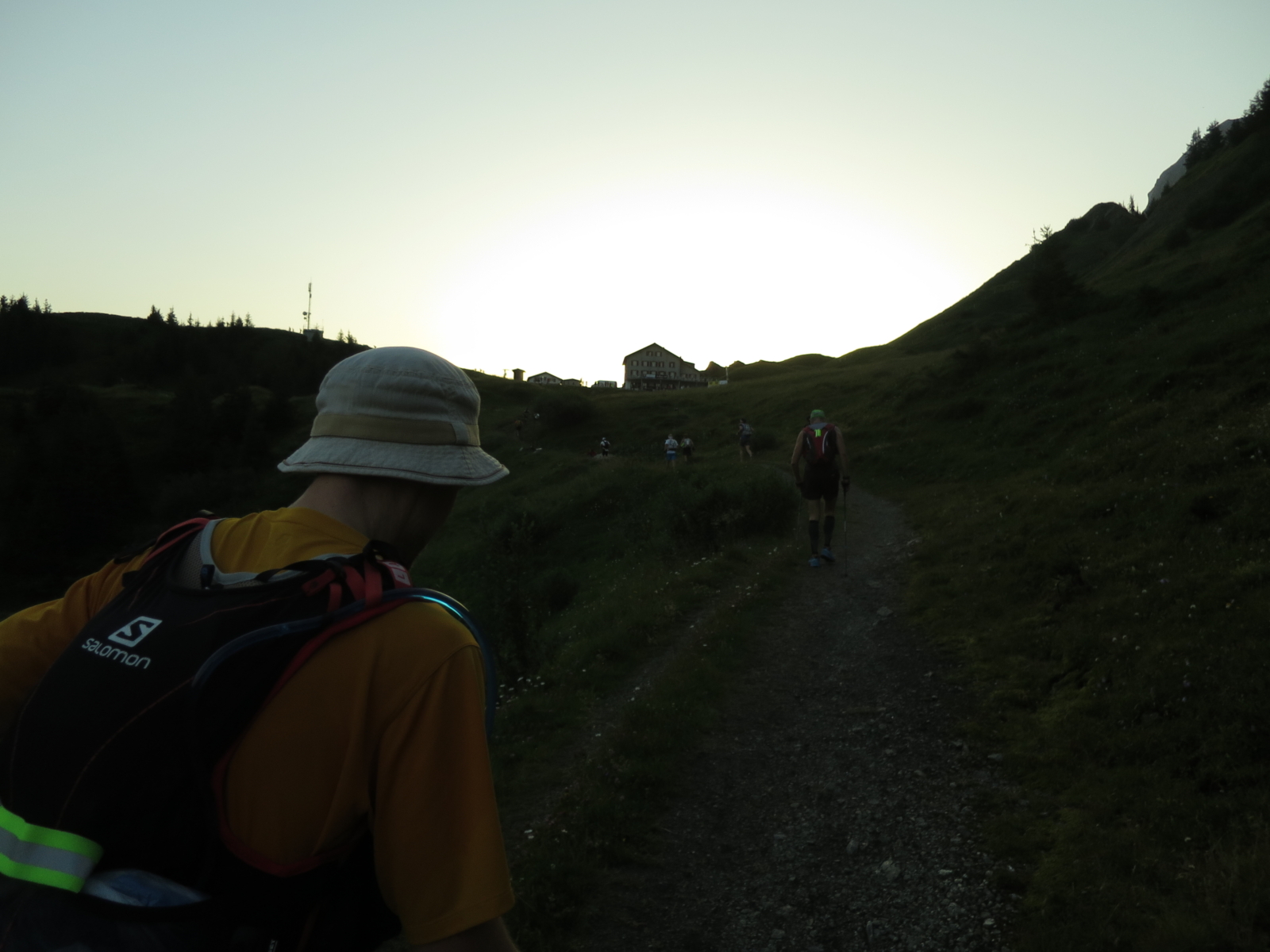 Man durchläuft Grindelwald und passiert nach einigen wenigen Kilometern eine enge Brückenpassage, wo sich naturgemäß ein erster Stau bildet, der aber nicht weiter dramatisch ist. Man startet mit Stirnlampe in die Nacht und wird beim ersten Aufstieg zur großen Scheidegg mit einem herrlichen Sonnenaufgang belohnt.