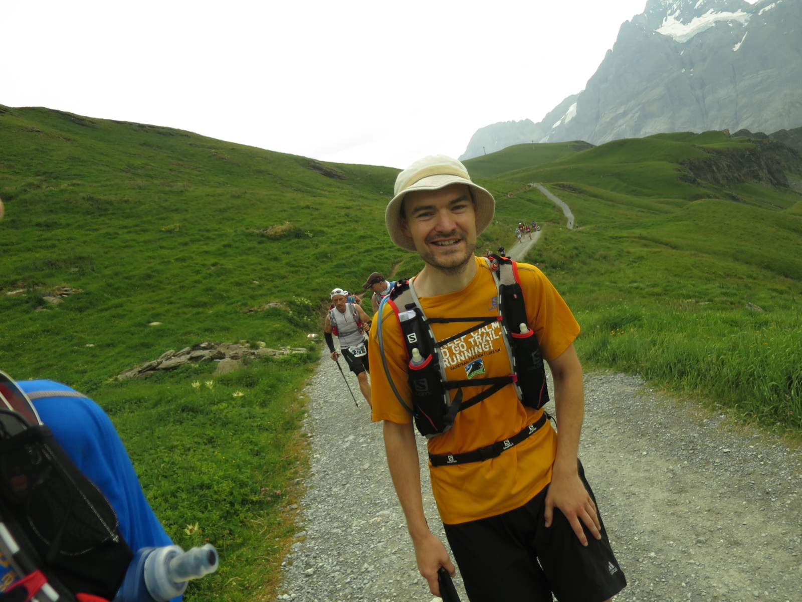 Mein Bruder fiel derweil ein wenig hinter uns zurück. An der Abzweigung zum nächsten Aufstieg wurden wir dann urplötzlich von einem Organisatorenteam abgefangen: Ein Gewitter würde nahen und wir sollten unmittelbar zur kleinen Scheidegg einlaufen.