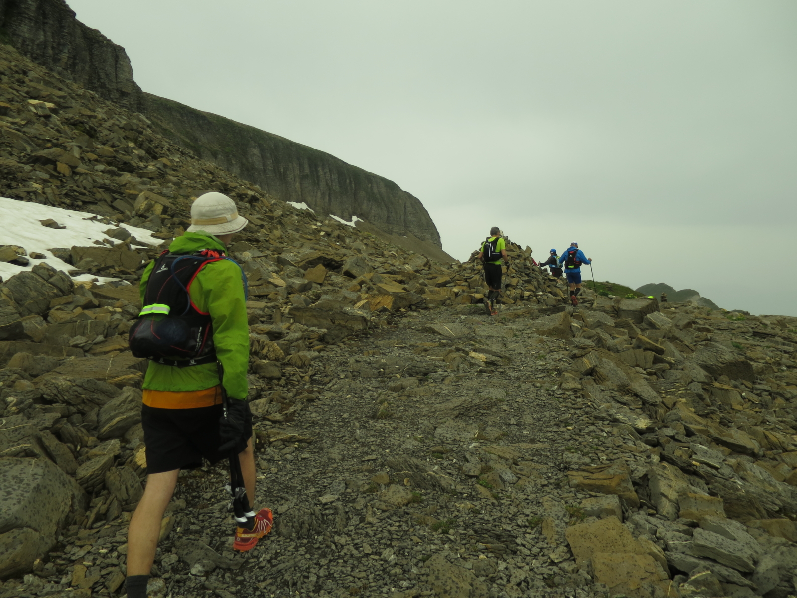 Zu der Zeit gleichen die Läufer noch einer Perlenkette und es schreitet einer nach dem anderen auf engen Pfädchen und Pfaden entlang des Wetterhorns voran, die sich immer näher zur großen Scheidegg voranschlingeln.